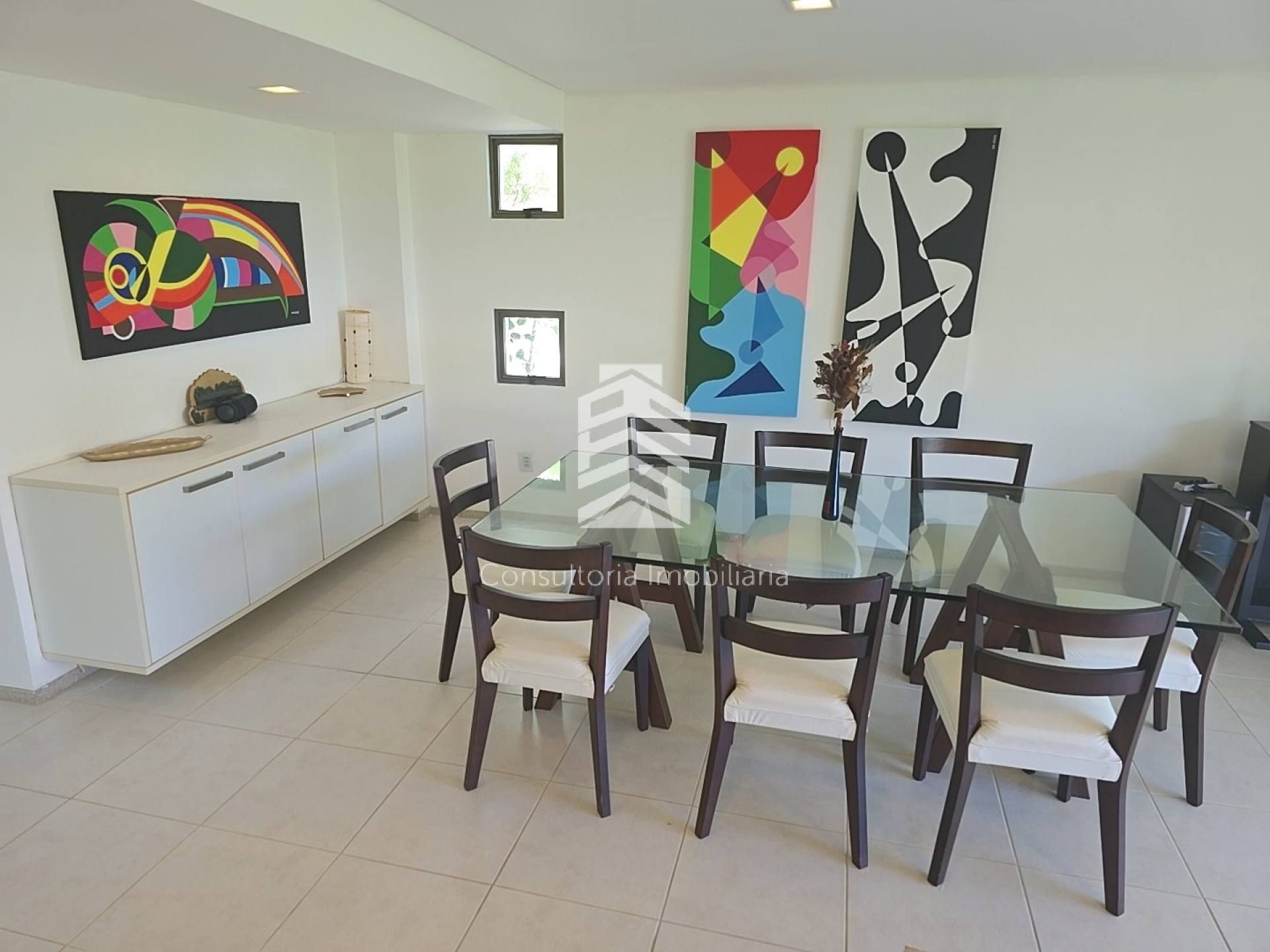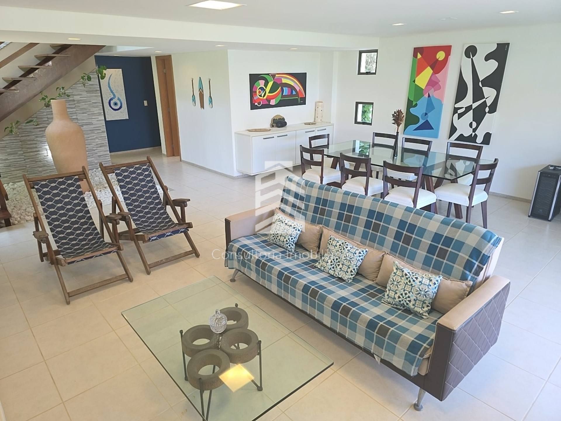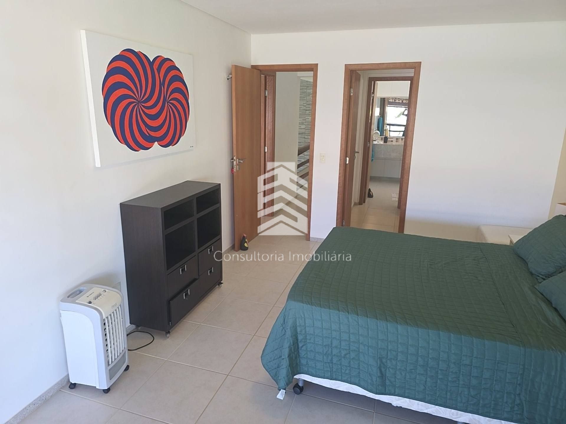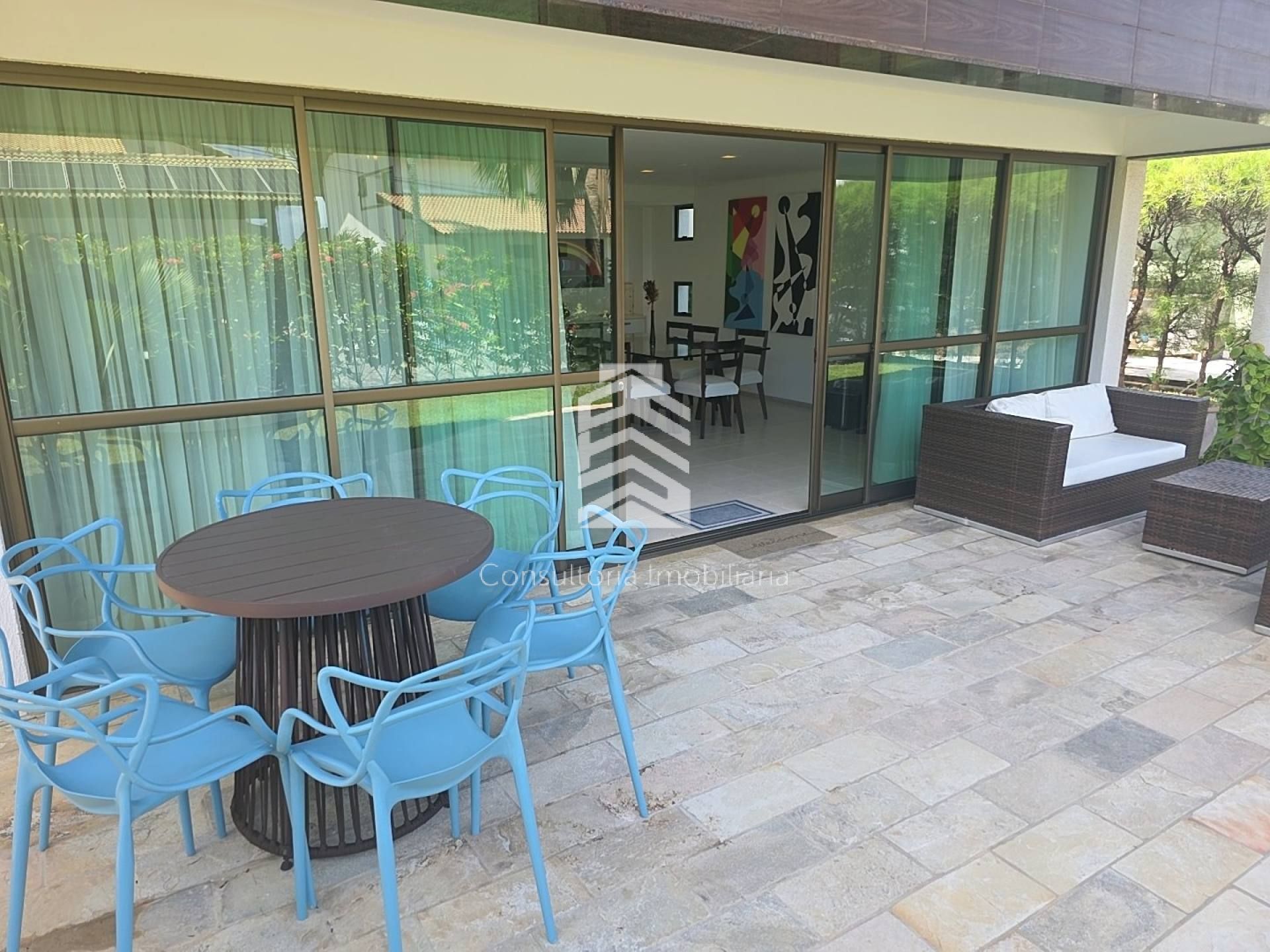 Excelente casa com 250m² de área construída, localizada em condomínio beira-mar com segurança 24h e lazer completo. O imóvel é pós beira-mar, possui 5 suítes, sendo 4 no pavimento superior (1 master com closet) e 1 suíte térrea, todas com armários planejados e ar-condicionado split, além de home theater.